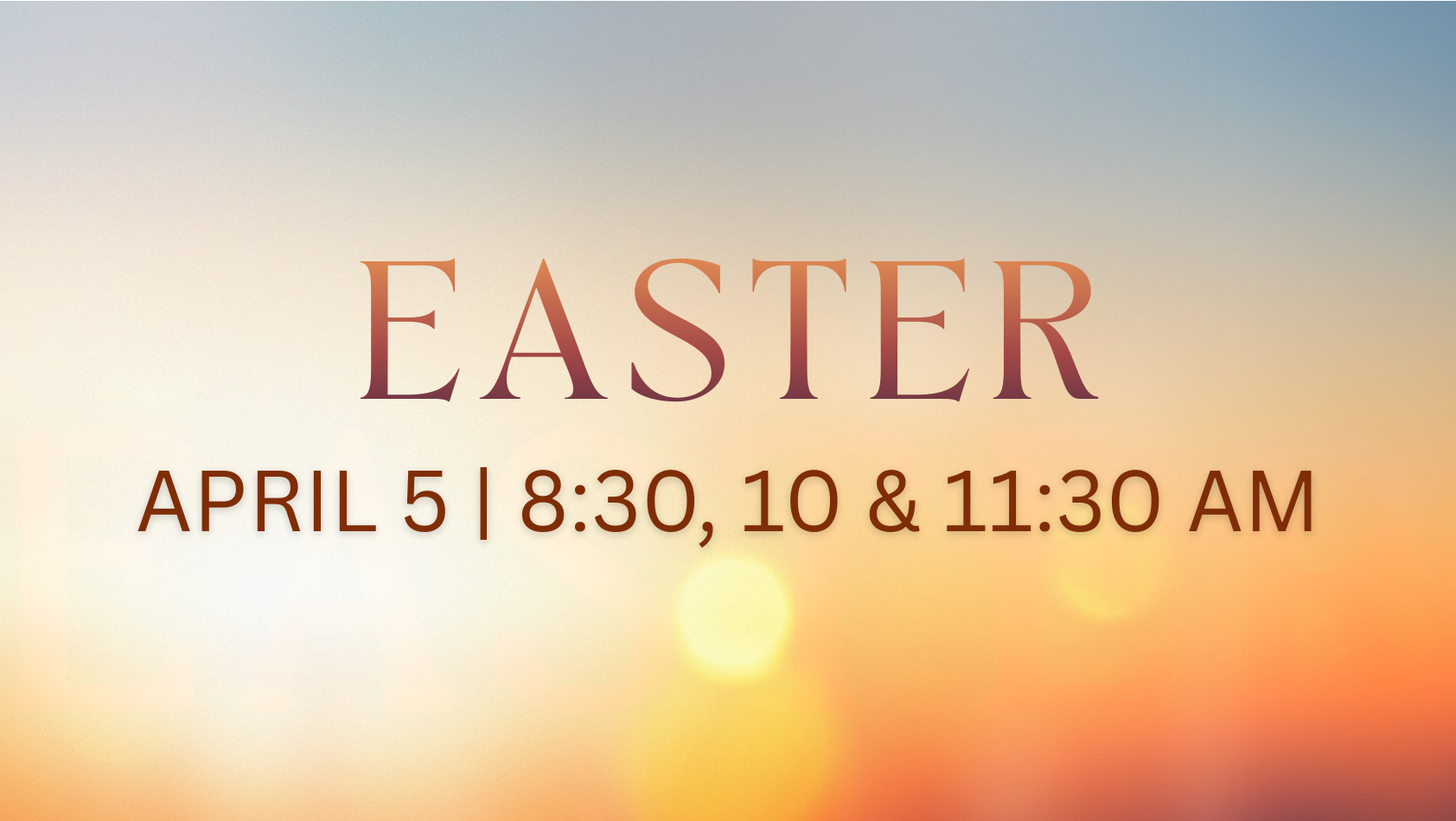 Celebrate with us on Easter Sunday at 8:30, 10:00 & 11:30 am! Each service will be approximately 1 hour long.